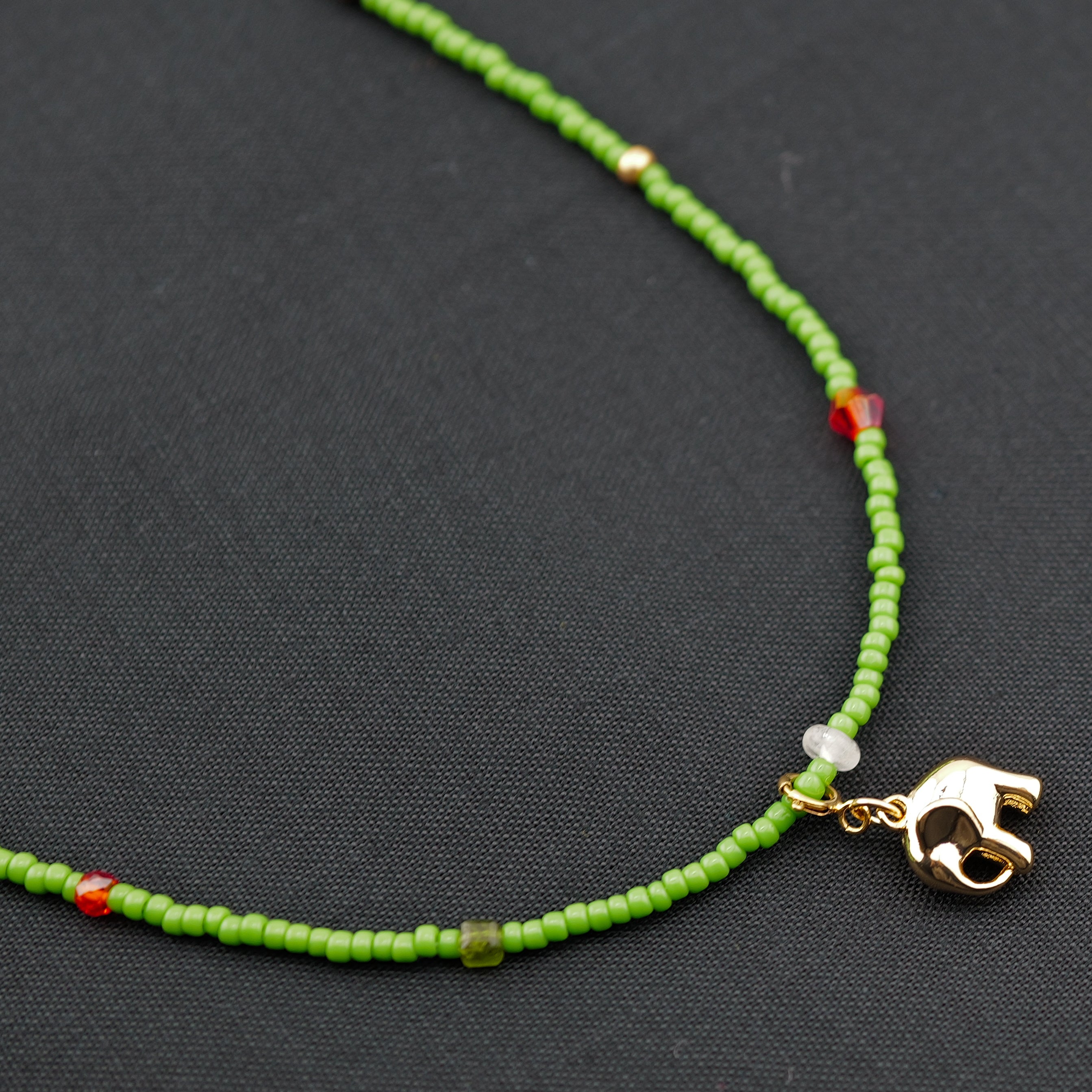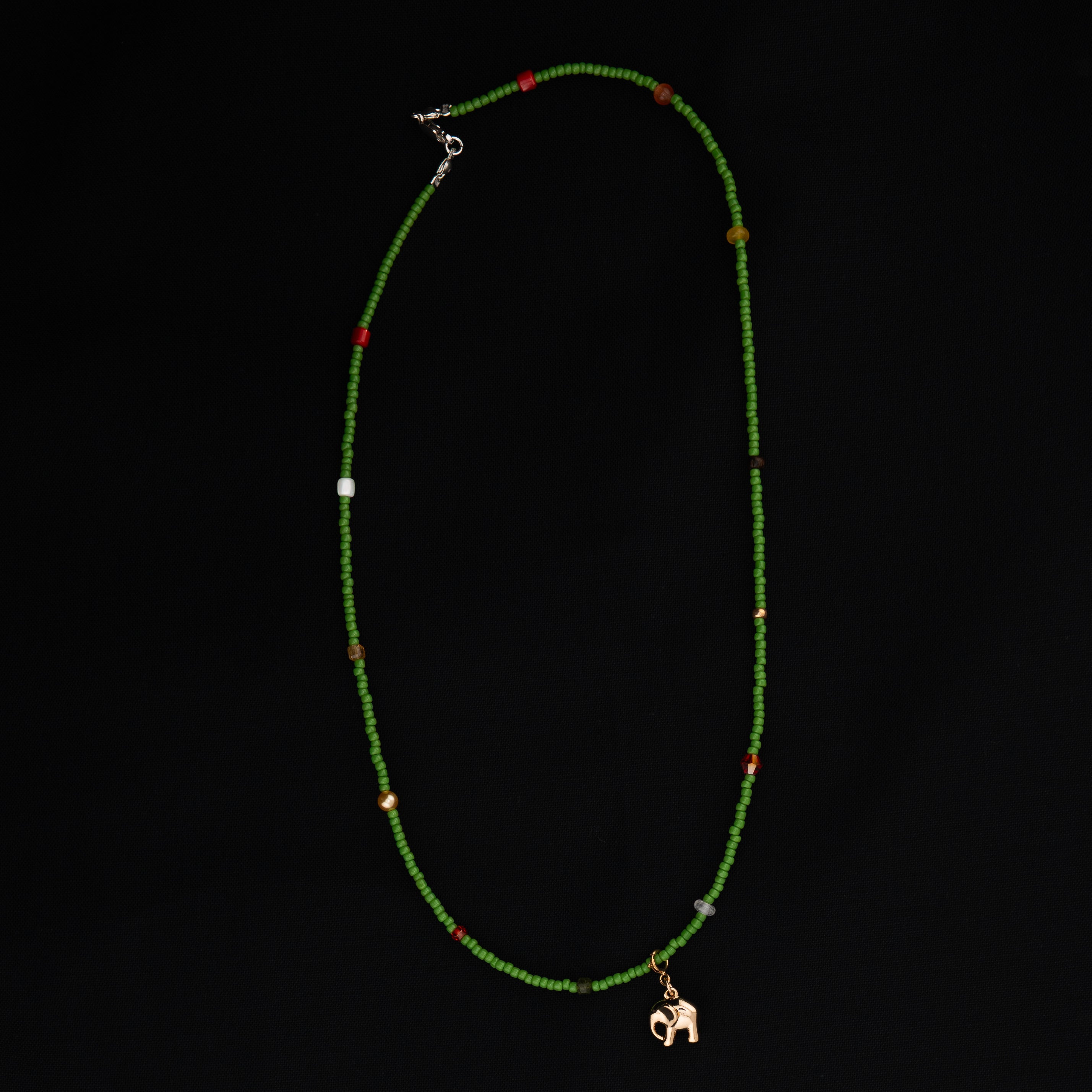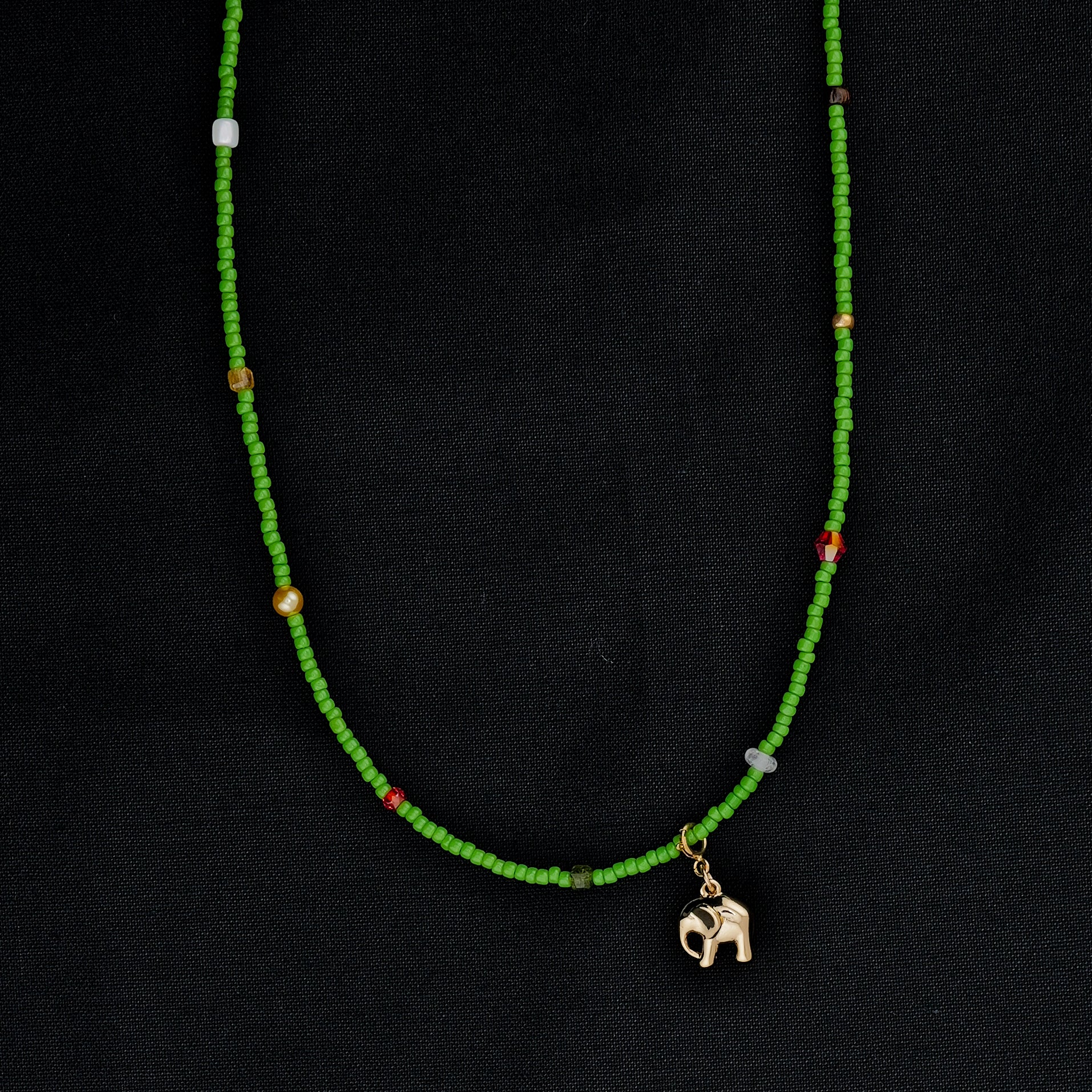 The green glass beads (wilderness) acknowledge moments of hardship and confusion, while a sophisticated composition of premium semi-precious stones, mother of pearl beads, wooden accents, and luminous cubic zirconia represent the gifts of grace that sustain us through life's trials. detachable gold-filled elephant pendant—symbolising strength and unwavering courage—becomes a focal point of reflection and empowerment. Each element converges to communicate a profound message: that divine presence persists even in our darkest hours, offering hope and encouragement when we need it most. A wearable testament to faith, hope and perseverance.